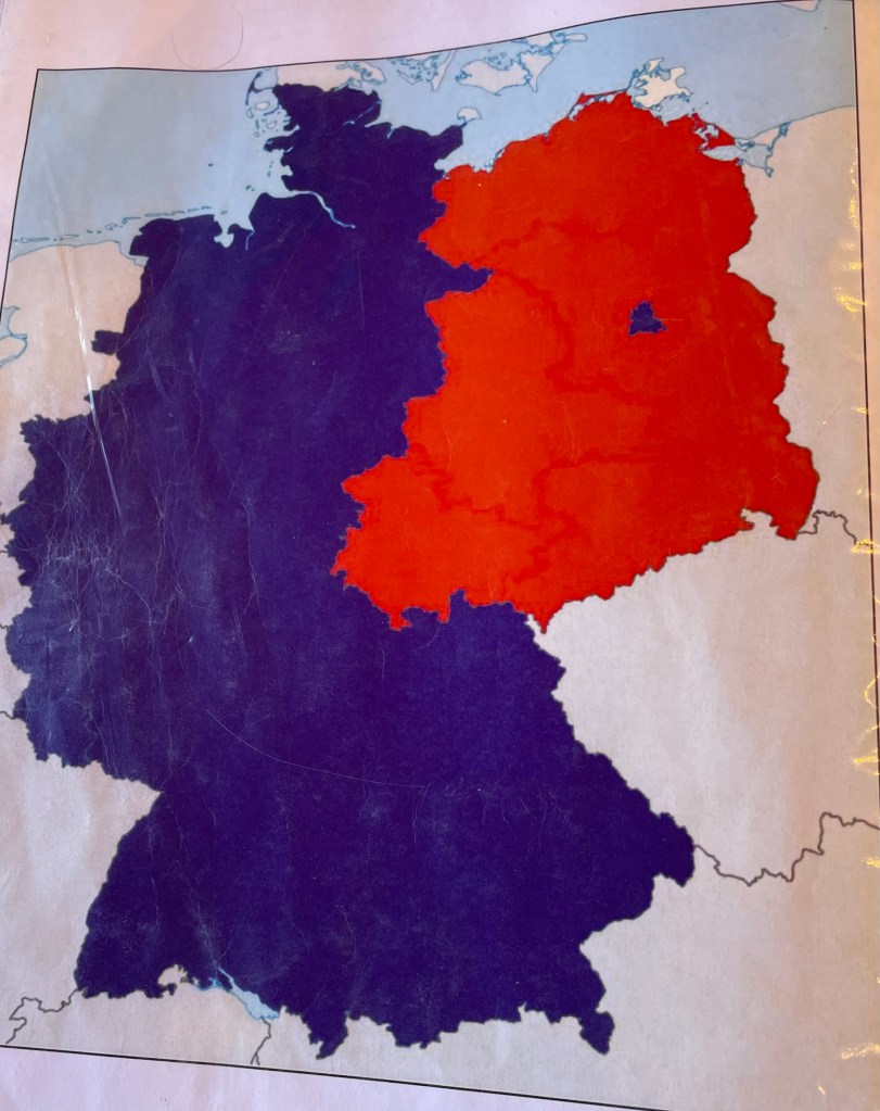 After the war Berlin was completely encapsulated by communism. It’s this tiny purple dot surrounded by a sea of red communism.