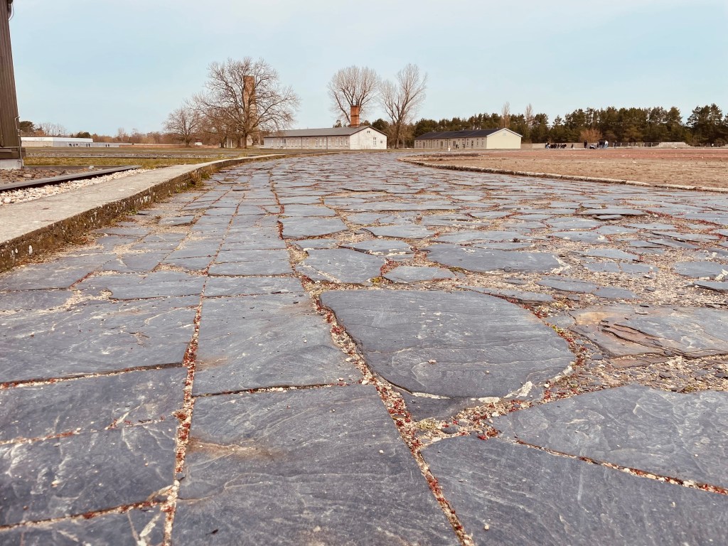 Every morning at 4:15am was roll call. Prisoners would receive their work detail the morning of without preparation. Shoes for the Nazi soldiers were manufactured at Sachsenhausen. The prisoners would be loaded down with the weight of a full military pack and sent to march all day in order to test the soles of the shoes, and make sure they were good enough for the Nazi soldiers. We stood on the path the prisoners were forced to run back and forth on. If you received shoes too big or small for you, that was your problem. Failure to have the endurance to run back and forth all day resulted in a severe beating at minimum, and in the worst case, murder.